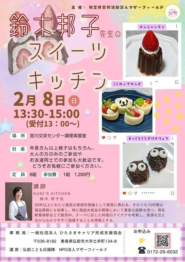2/8鈴木邦子先生のスイーツキッチンを開催します。 お申し込みはこちらから