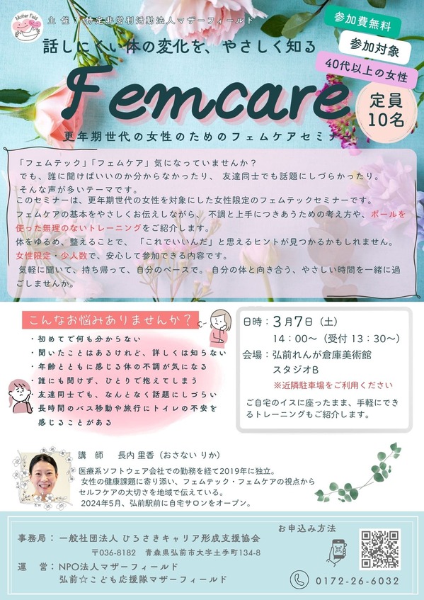 3/7 長内里香氏のフェムケア講座を開催します!
